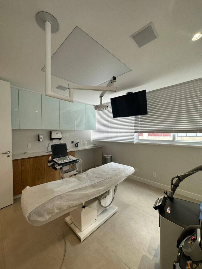 O procedimento é feito na clínica, de forma minimamente invasiva, sem cortes, com anestesia local e, quando indicado, sedação leve com anestesista. A alta é no mesmo dia.